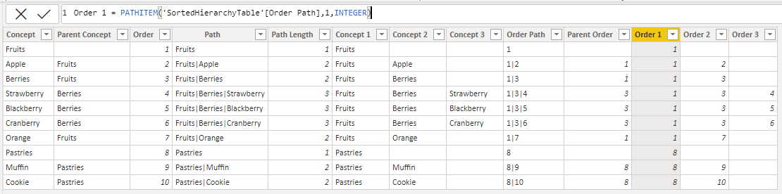 Concept 1 = PATHITEM ( SortedHierarchyTable[Path], 1, TEXT )
