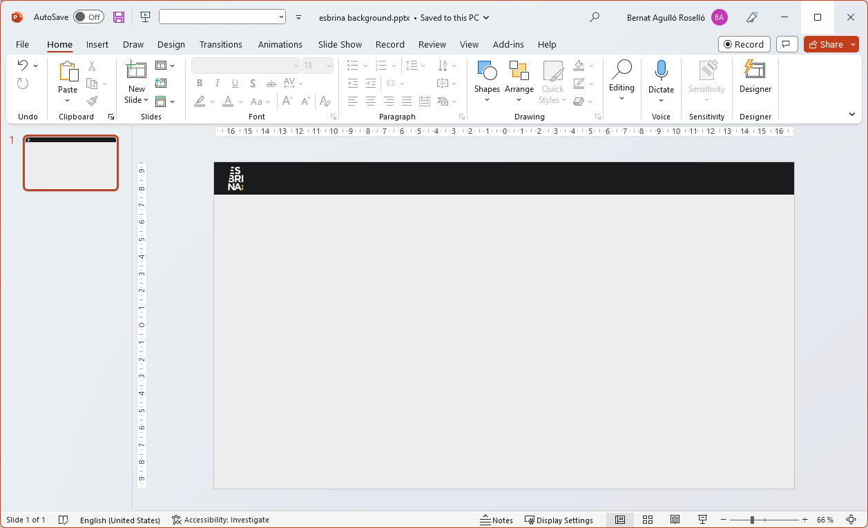 Before we jump into the tool, we do need a background image. The easiest way you can go about it is to create it with PowerPoint. And the easiest design you can go with is just a light gray background with some brand color for the top bar with a logo on the left hand side.