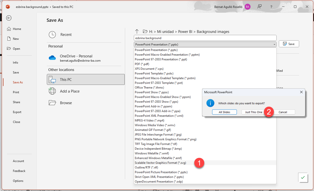 Now we can save this as svg so that the shapes stay nice and clean ( I haven’t tested alternatives, this is just my happy path ). For some reason in my first tries I selected all images rightclicked and selected save as image. Don’t do that. It adds some margin around that destroys the whole purpose. Instead just go to file –> Save as –> and select «svg» on the file type dropdown and say «just this one» on the pop-up question