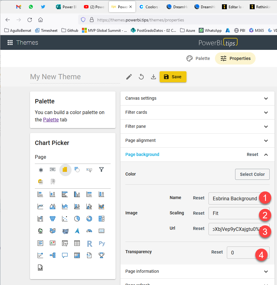 I hope at some point PowerBI.tips offers the possibility of duplicating a theme, since you might have a common style for tables and charts but a different background for each department for example. If you also want this to happen, let Mike Carlo know here!