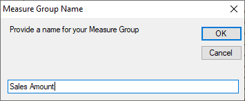 The second dialog box is to provide a name of the calculation item, which will be visible when we use it in the matrix, is the measure group name.