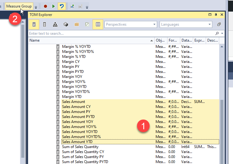 So more than measure groups, we build calc item groups! I realize that my script as it is now it does nothing useful, and I need it to generate the code similar to the final version. Merging items from different measures like we did in Margin most likely will require some manual editing, but if we can get the code for Sales Amount group or Quantity that will we more than enough. I think it’s wise to close this post now and maybe get some feedback before thinking the best way to put the new –and useful– script together.