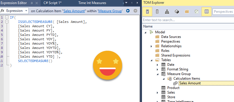 However, you might say — «hey I know the calc items you described are easy to write, but also quite boring to type. Isn’t there a better way?» Since I already mentioned calculation group, the only «better» way out there is of course a C# script to create a calculation group!