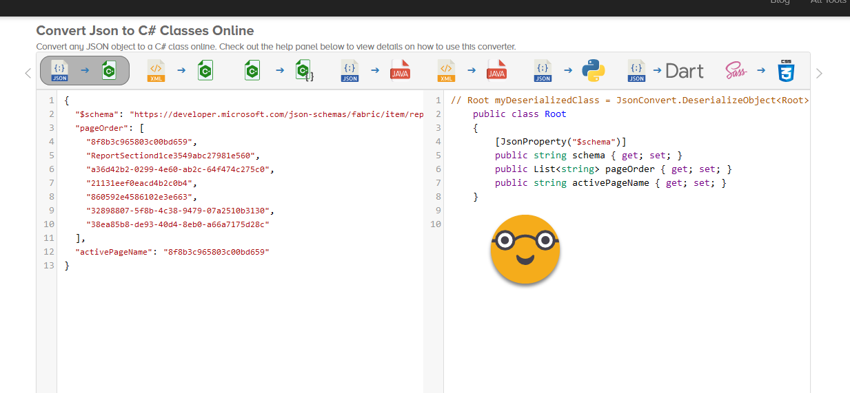 Wait, what? I have no idea on how to define a c# class! Well, me neither. But for both of us, the internet was born. Head over to https://json2csharp.com/ and paste the contents of pages.json. Just like that. Click convert and boom, you have a C# class you can use.