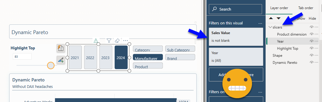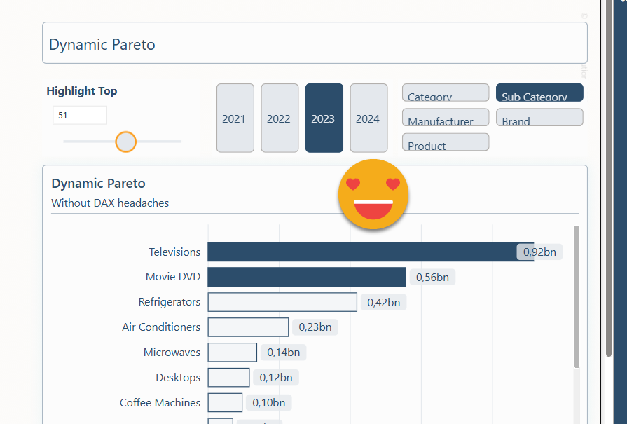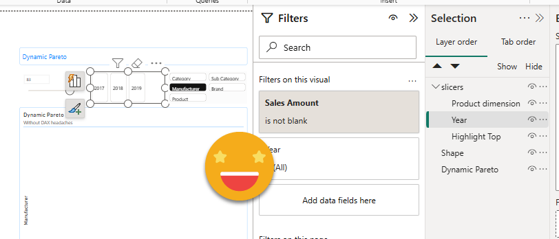 It is working!! Took me a while to get it all working but it’s good that it finally does work. And why is not showing any data??? Well, that’s because the original filter was selecting 2024 and in this model there’s only data until 2019 so, nope, no data. But that’s part of your job when setting up your report. In this one all the visual calcs and all the little tricks are already there so you can focus on how you want to leverage it. Why are colors off? Well that’s due to the custom theme of course. This is something that you should not have to do because you should be using a template right? Of course that could also be done in a macro, but I don’t think it’s worth the effort. For leveraging cool uses of visual calcs or complex visuals with several fields, it is sure worth it.