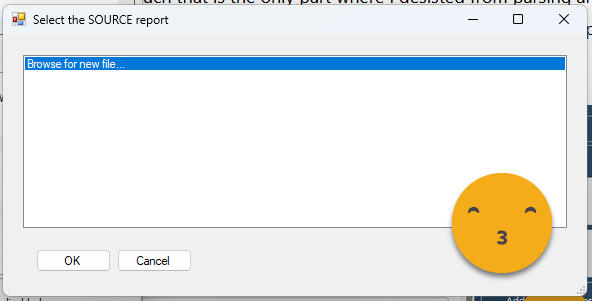 So again, with tabular editor connected to the semantic model of the target report, let’s execute the script. We are greeted with a list box that this very first time only has «Browse for new file»