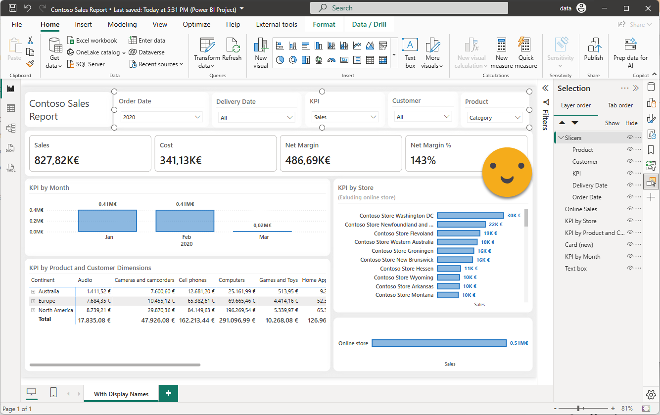 As starting point I took one of the pages of the report I used to show how to make a report bilingual. Of course, in this case I took the page that was not yet fully bilingual and had already some proper display names and custom titles to make visuals easier to understand. This could be a starting point, but in most cases it’s going to be much, much more complex.