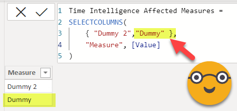 Ok, so now that we have the dynamic measure calc group we’ll build the time intel calculation group, selecting only [Dummy 2] — (you can get the code and learn how to use it in this blog post)