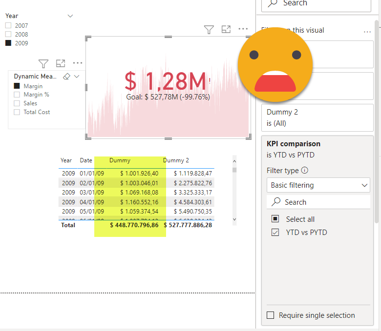 If you want to see how this plays out, keep reading. At the end we’ll see how to apply YTD to the main measure and PYTD to the secondary one as well, which is a bit trickier.