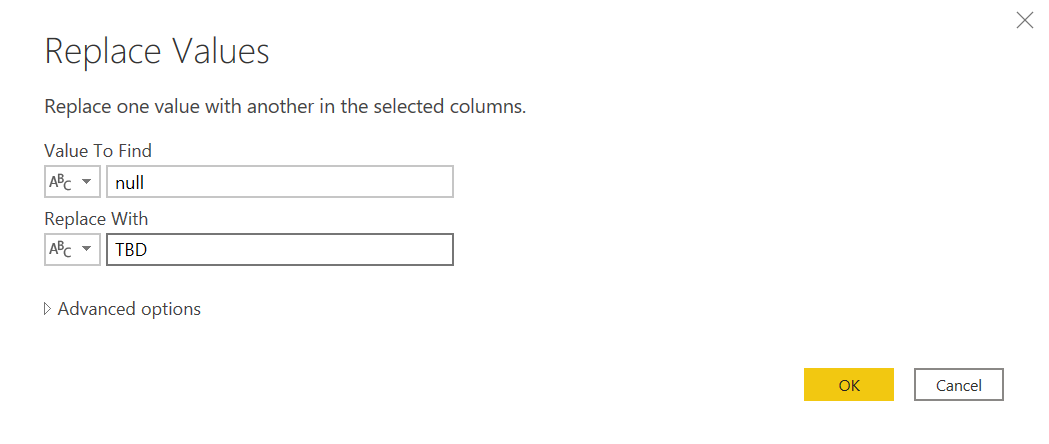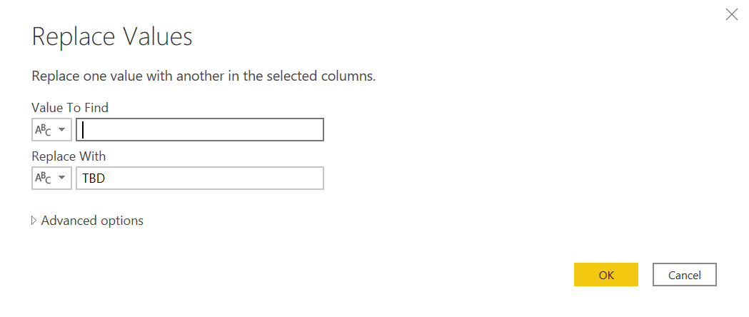 Now we might want to give blank mappings some actual text, such as «TBD» (To be defined). We can replace blanks with such text. We aware that a blank cell from excel will show as empty string, while a color not present in the excel table will result in null.