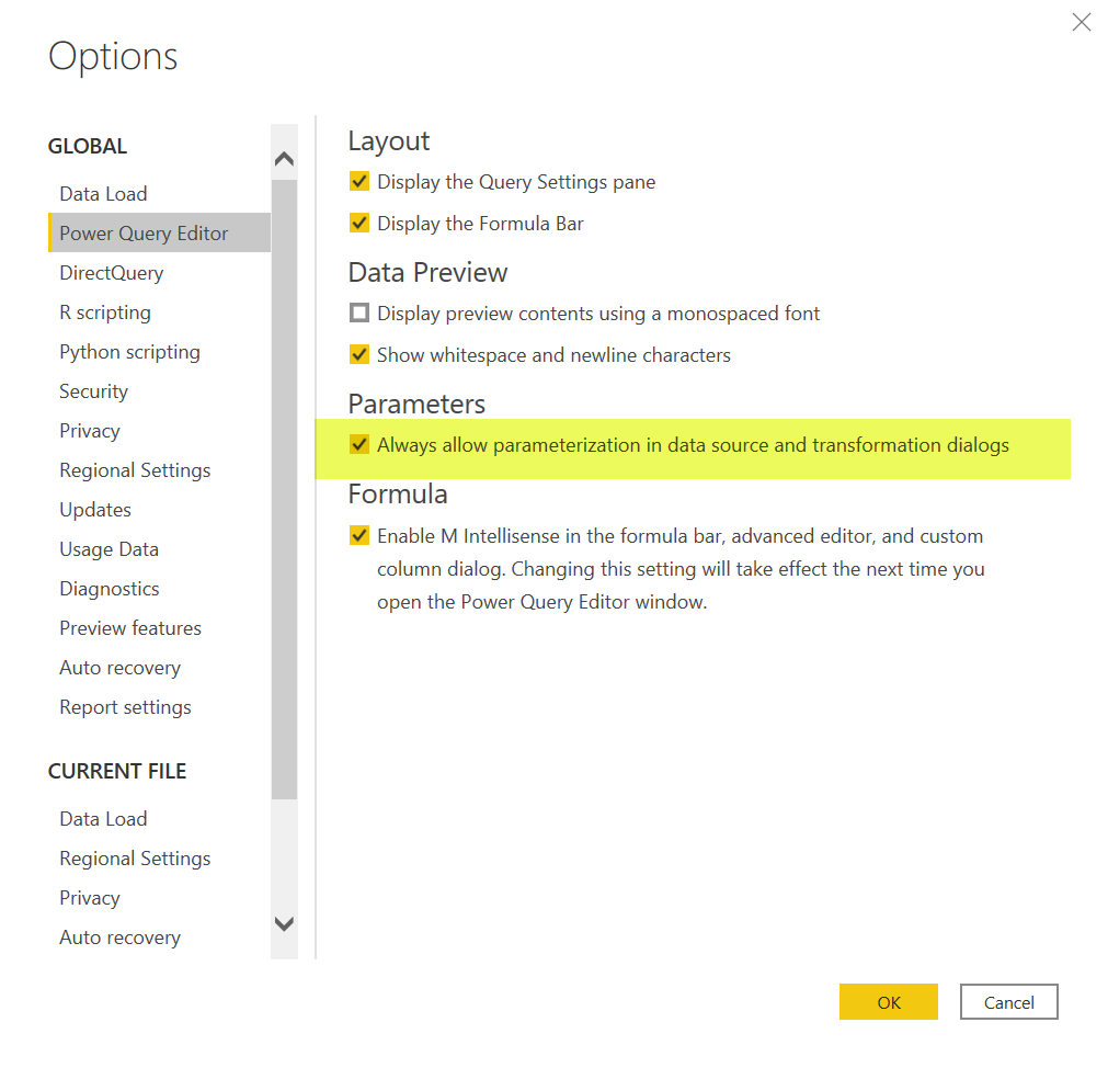 This post might get too long, but I want to share how I do it in case you find it useful. First of all, you need to enable the setting to allow to use parameters always: