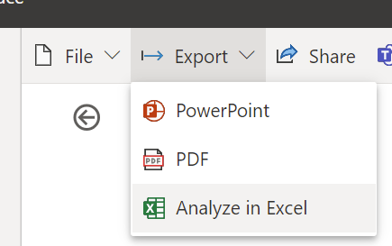 Now it’s time to publish to the service. Once published we’ll click on Analyze in Excel option either from the workspace view or from the report view.