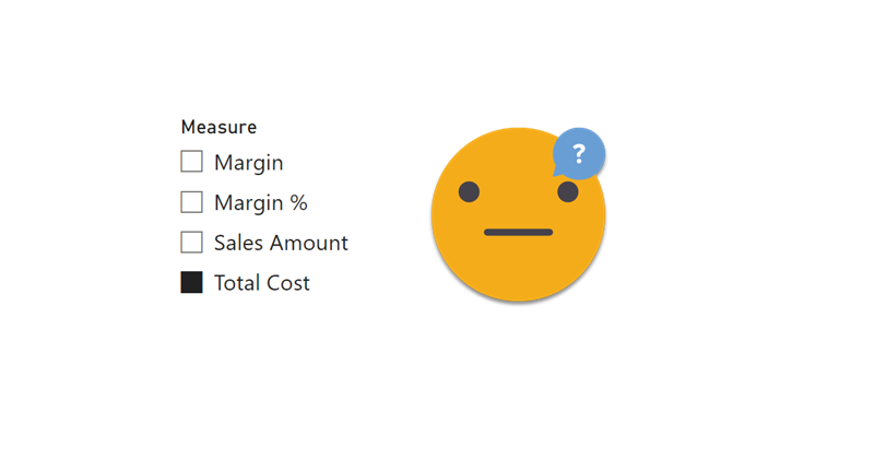 What? So easy?? I was completely sold and I continue to be. Field parameters are small tables. Even that huge field parameter I created on the dynamic headers article was around 240 rows. Tiny for Power BI standards, so an extra column does no harm and makes life easier in general (Sorry, Chris!). You can use SELECTEDVALUE just like in any other field. Isn’t that sweet?