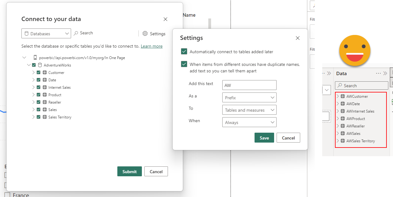 The first thing that we’ll see is that it will ask if we want to keep all the tables of the (now remote) model and if we want to add some prefix to prevent a full mess later when we add more tables. If our plan is to connect to more than one model, definitely use this.