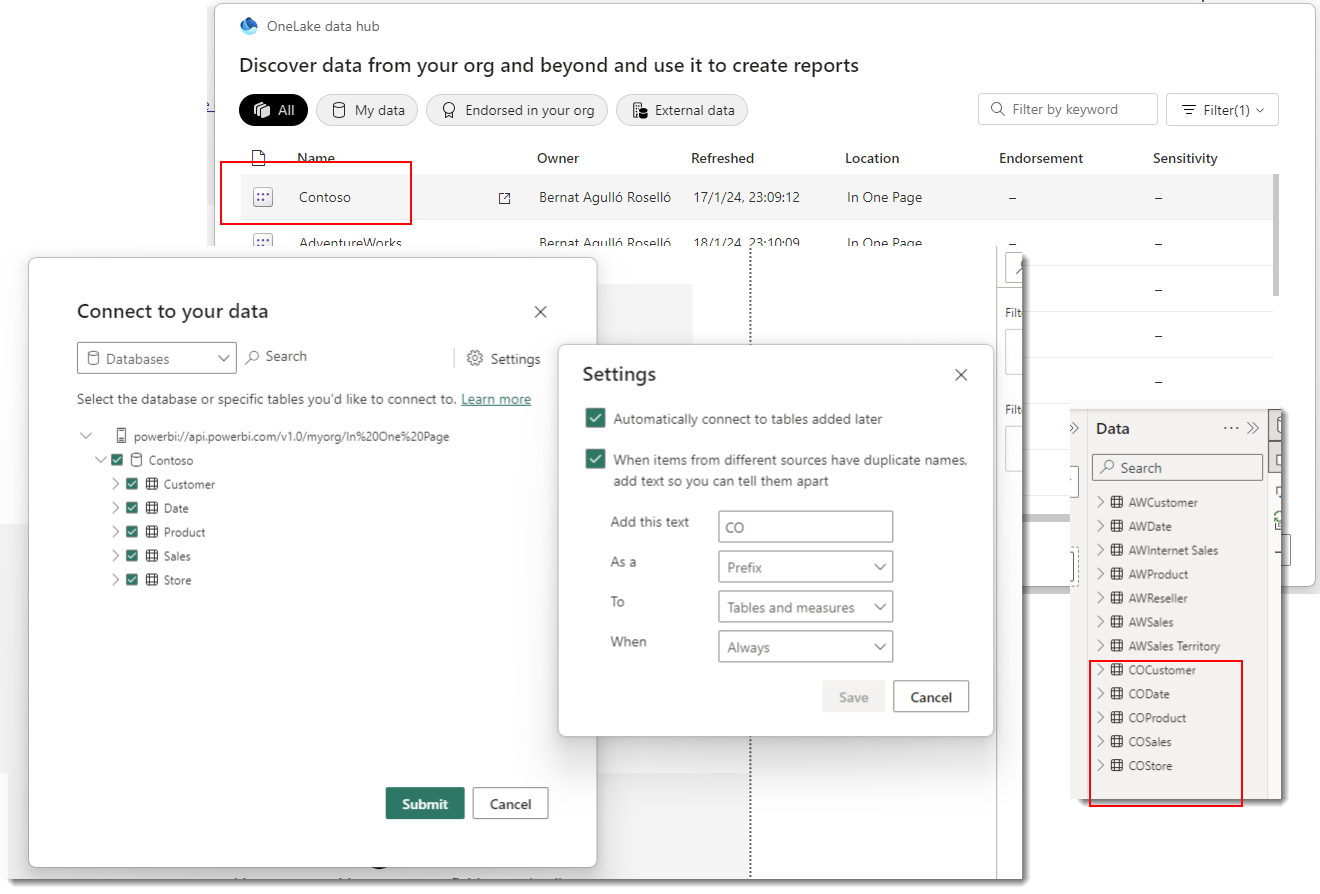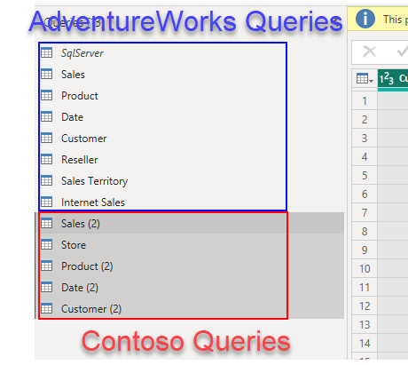 Once the connection to the original model is transformed into direct query, we can select other models to connect to. This was AdventureWorks, let’s connect to Contoso.