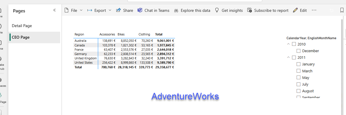 For each report we already prepared an aggregated visual, which might be the one that the CEO wants to see.