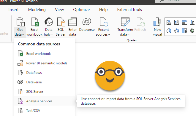 Step 7: In your new model (the daughter of all models) go to Get Data and chose «Analysis Services»