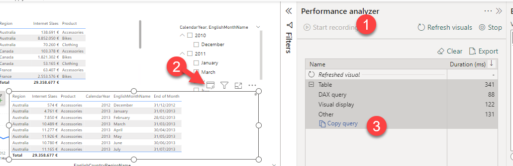 Step 5: Open the performance analyzer, and refresh the visual object.