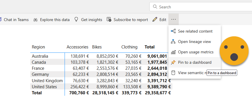 I’m not finished with the cons yet. You can’t really change the filters that are applied to a tile, beyond removing the tile and adding it again with some filters. So if you want to show the current month, you will need a «Current month» column on your date table and have the filter set to «current month». That makes inconvenient to say the least. Yet the big deal breaker is yet to come: The different tiles are disconnected from each other, and whenever you click a visual object you jump into the original report (or elsewhere if you modified the link). They are smart enough so that if you add the dashboard in an app, clicking on a visual will bring you to the report in the app. From my experience in different customers, people mostly hate them. Both developers and consumers. Even beyond the limitations «by design» the overall experience feels half-baked. There has not been any improvement there for years, so don’t expect improvements. They are likely to stay as they are today.