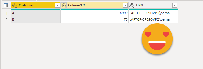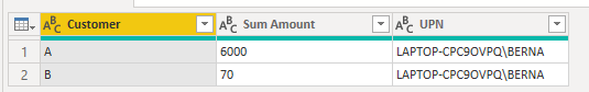 let Source = Csv.Document ( File.Contents ( "H:\Mi unidad\Power BI\Username encript in measures\in value expression.csv" ), [ Delimiter = ",", Columns = 2, Encoding = 65001, QuoteStyle = QuoteStyle.None ] ), #"Promoted Headers" = Table.PromoteHeaders ( Source, [ PromoteAllScalars = true ] ), #"Split Column by Delimiter" = Table.SplitColumn ( #"Promoted Headers", "Sum Amount", Splitter.SplitTextByDelimiter ( #"zero width non-breaking space", QuoteStyle.Csv ), { "Column2.1", "Column2.2" } ), #"Changed Type1" = Table.TransformColumnTypes ( #"Split Column by Delimiter", { { "Column2.1", type text }, { "Column2.2", Int64.Type } } ), #"Added Custom" = Table.AddColumn ( #"Changed Type1", "invisible binaries", each Text.Split ( [Column2.1], #"zero width joiner" ) ), #"Added Custom1" = Table.AddColumn ( #"Added Custom", "UPN", each List.Accumulate ( [invisible binaries], "", ( status, current ) => if current = "" then status else status & #"invisible binary sequence to letter" ( current ) ) ), #"Changed Type" = Table.TransformColumnTypes ( #"Added Custom1", { { "UPN", type text } } ), #"Removed Columns" = Table.RemoveColumns ( #"Changed Type", { "Column2.1", "invisible binaries" } ) in #"Removed Columns"