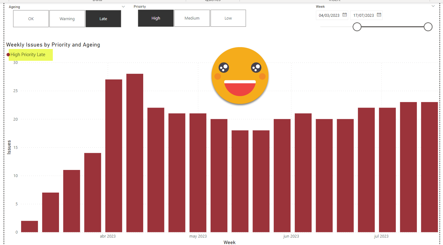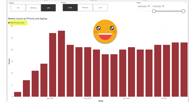( "High Priority Late", NAMEOF ( 'Issues'[High Priority Late] ), 6, "High", "Late" ),
