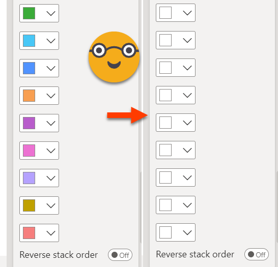 I know, it’s a terrible title, but it’s the best I could come up with. This blog post is to explain a workaround for a behavior I detected while playing with a field parameter (all measures) and a stacked column chart. The problem is as follows: If you have more than one measure in the chart, you can define a color for each measure and all works fine. However, if you filter your field parameter table in a way that only one measure is used in the chart, then that color is ignored and you get a default color. What’s even worse is that the same color will be used whenever a single measure is included, so you can’t even configure it again to get the right color. Fighting the same issue? Keep reading!