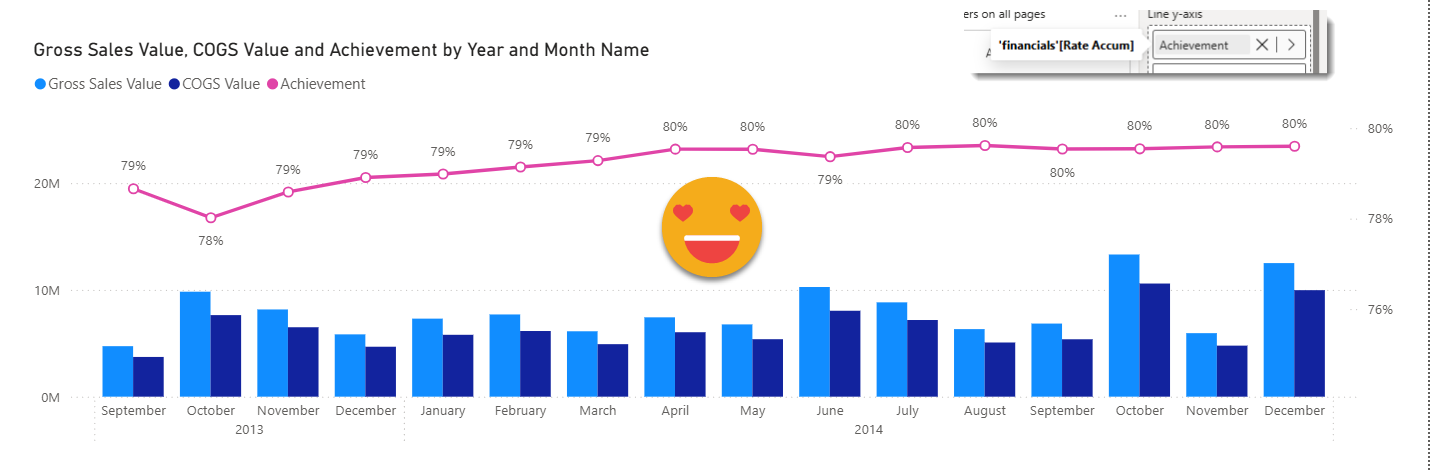 Now your boss comes and says, «you know what? In the Combo chart, the line instead of the moth achievement rate, I want to use the accumulated achievement rate of all time. »