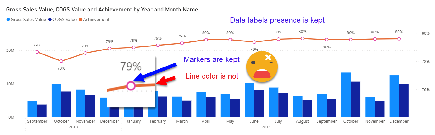 I haven’t tested for all field locations in all visuals (I don’t work for Microsoft after all) but what is kept and what is not, is not consistent either. And it is, to say the least, inconvenient. Of course both On-Object Interaction and Visual Calcs are still in preview, so hopefully this will get fixed eventually by GA.