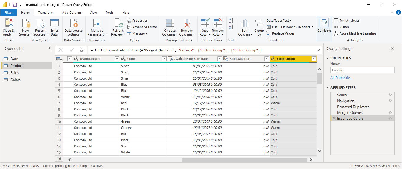 We select the two «color» columns to do the join and after that we expand to leave only the new column