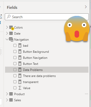 Since the Data Problems measure was created for this button, the scripts places it in this new table as well. (The table is set to be hidden, but in the report view appears visible by default. Once you close and reopen the file it is already hidden)