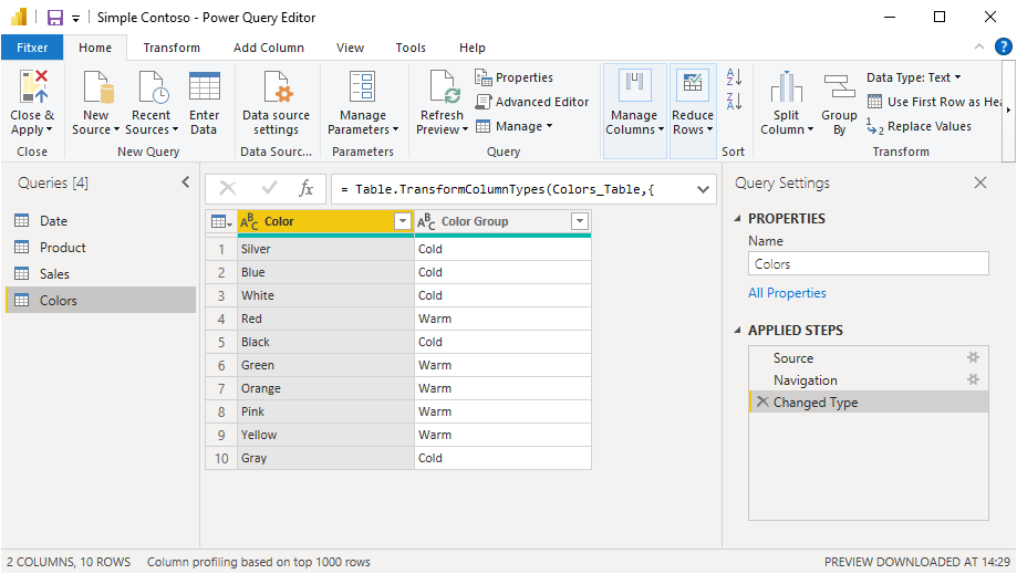 Before applying changes, remember to remove the flag «Load to model» from the «Colors» query as we do not need the table for our model.