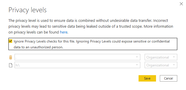 This is what would be more appropriate in this particular case, and the steps are not so different. When merging (Left Outer join) the tables we might get the following warning. Normally I just check ignore privacy levels to get around it.