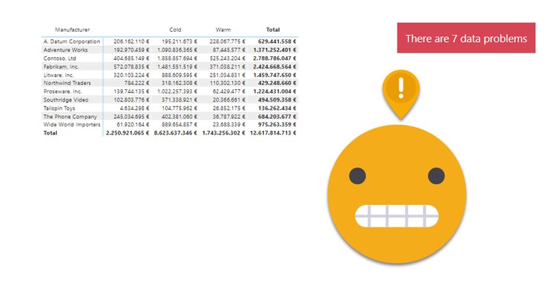 Setting up a «Data Problems» warning (and detail page) in Power BI reports