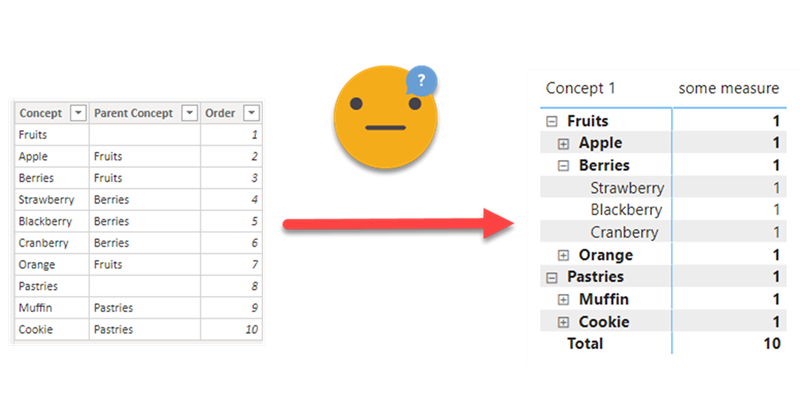 SortedHierarchyTable for Order 1 = SELECTCOLUMNS ( 'SortedHierarchyTable', "Concept", [Concept], "Order", [Order] )