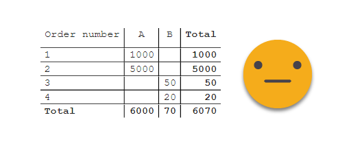As you can see it failed miserably. Not only it did nothing with column B, it looks like it did something with the total and made it show in two lines, which makes no sense at all. I tried with other characters, and it did work, so it had to do something with the spaces. For example with underscores: