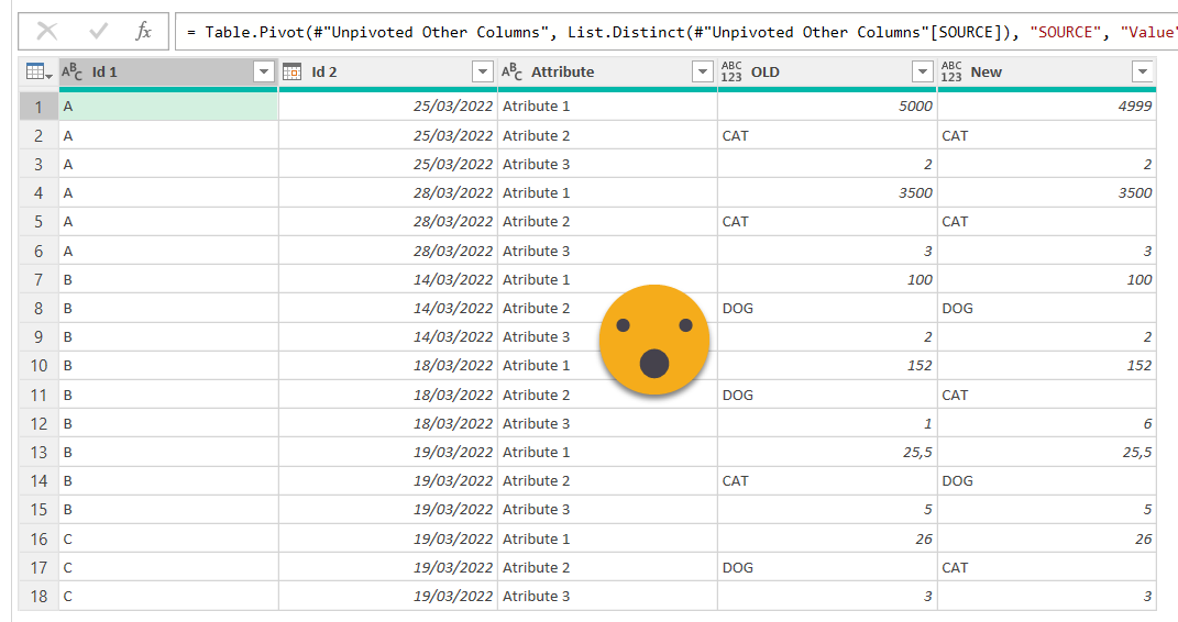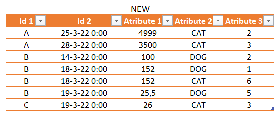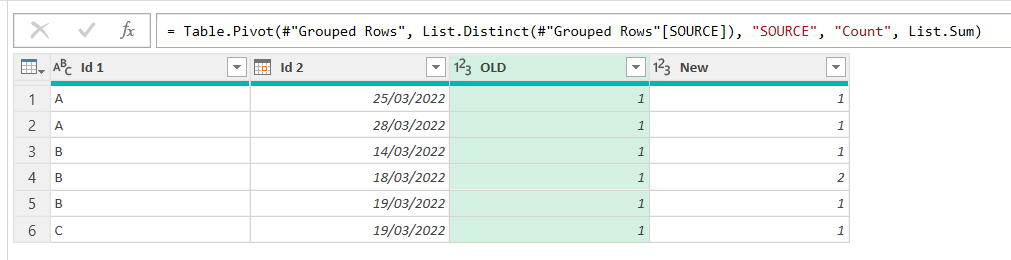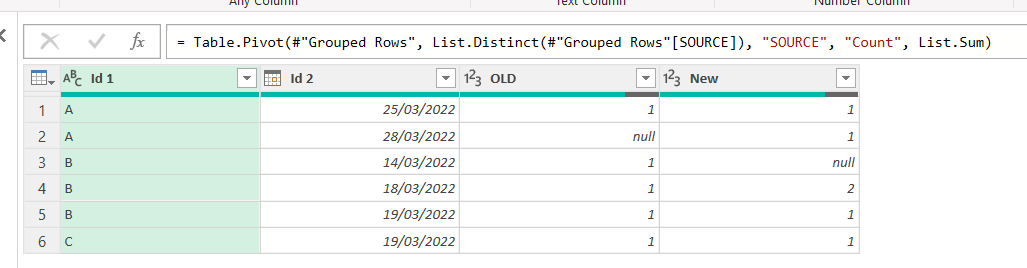 From here it’s straight forward to build a pivot table, show ids of one type, check out what might be going on, and so well, fix it. In our case we saw that the Primary Key was not being respected for B – 19/03/2022 so we found the issue and got rid of the 4th row of our table (improving our query or whatevere produces that table).