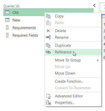 Now it’s time for the actual append. Select the Old query, and select Append –> Append as New