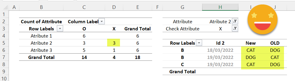 And if we load that to a pivot table it’s straignt forward to have a general view on which attributes need more attention and getting the details of the cases that do not match