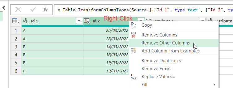 = Table.SelectColumns(#"Changed Type",{"Id 1", "Id 2"})