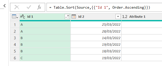 = Table.Sort(Source,{{"Id 1", Order.Ascending}})