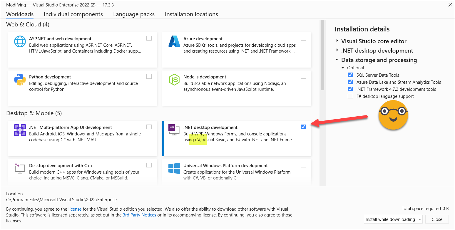 Visual studio is so huge that it does not install everything, you need to chose. Doing this is still huge so imagine. We need to make sure we install the .Net package to be able to create the type of projeect we need. You can do this during intallation or afterwards with Visual Studio Installer, which is like a separate application in your pc to update and modify the installation of Visual Studio.